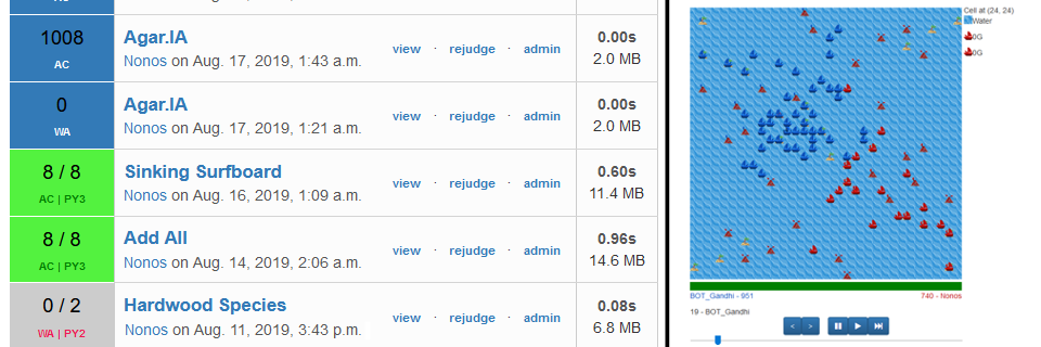 I implemented a functionnality that allows users to upload and compile their program on the website, and make it compete against other players. A visualiser also allows them to understand better