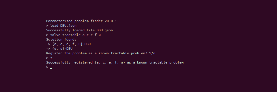 A simple problem in Python meant to facilitate research in parameterized complexity, by finding quickly which sub-problems of a problem with multiple parameters can have their complexity decided with a database of